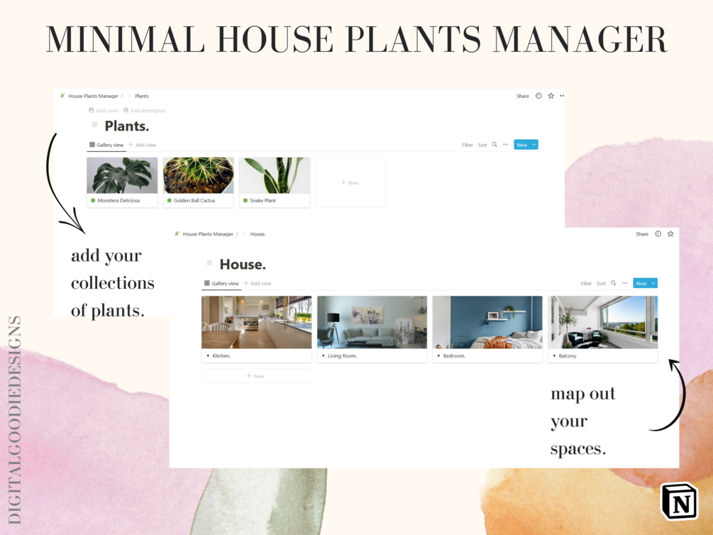 This is a simple and easy to use notion template, It helps you to keep track of your plant collection. You can add a lot of information about each one. Now you'll never forget when you adopted your babies.